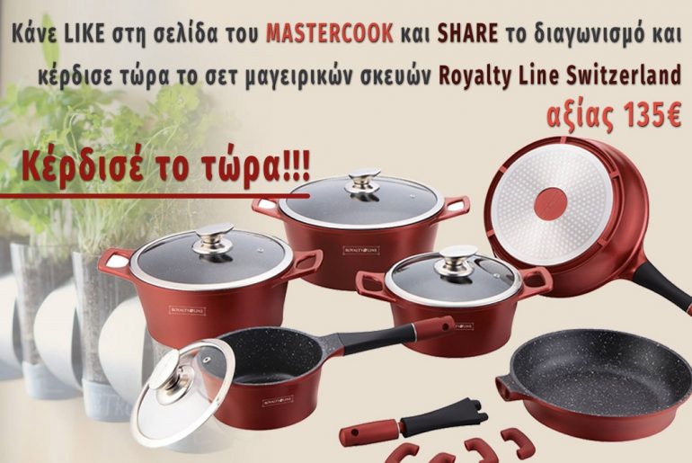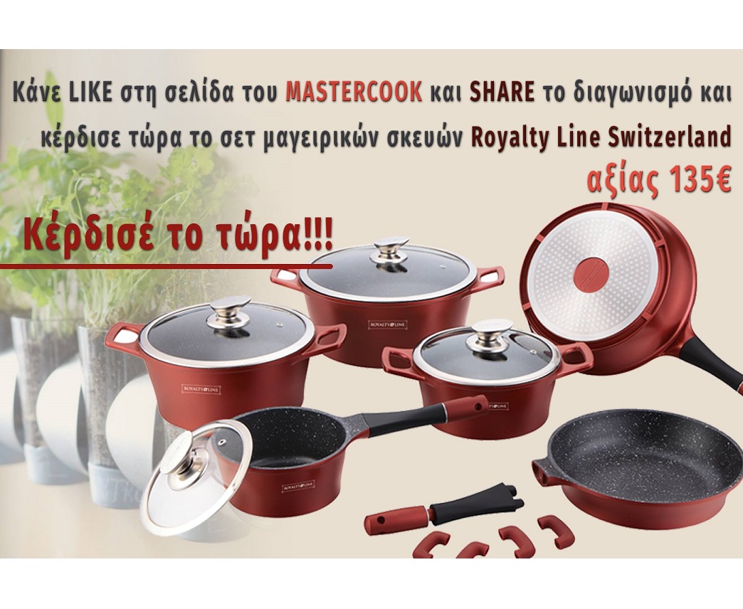 Το mastercook.gr διοργανώνει διαγωνισμό και σας δίνει τη δυνατότητα να κερδίσετε σετ κατσαρόλες 14τμχ με μαρμάρινη επίστρωση – Royalty Line Switzerland, αξίας 135€!