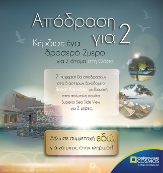 Διαγωνισμός Mediterranean Cosmos με δώρο 7 2ήμερα σε πολυτελή σουίτα στο 5* Royal Paradise Beach Resort & Spa στη Θάσο