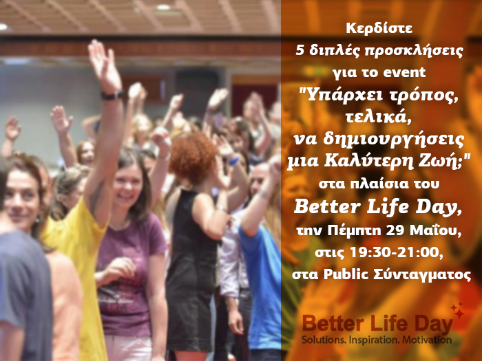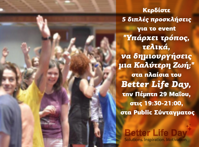 Το mednutrition.gr διοργανώνει διαγωνισμό και σας δίνει τη δυνατότητα να κερδίσετε 5 διπλές προσκλήσεις για το Better Life Day pre-event!