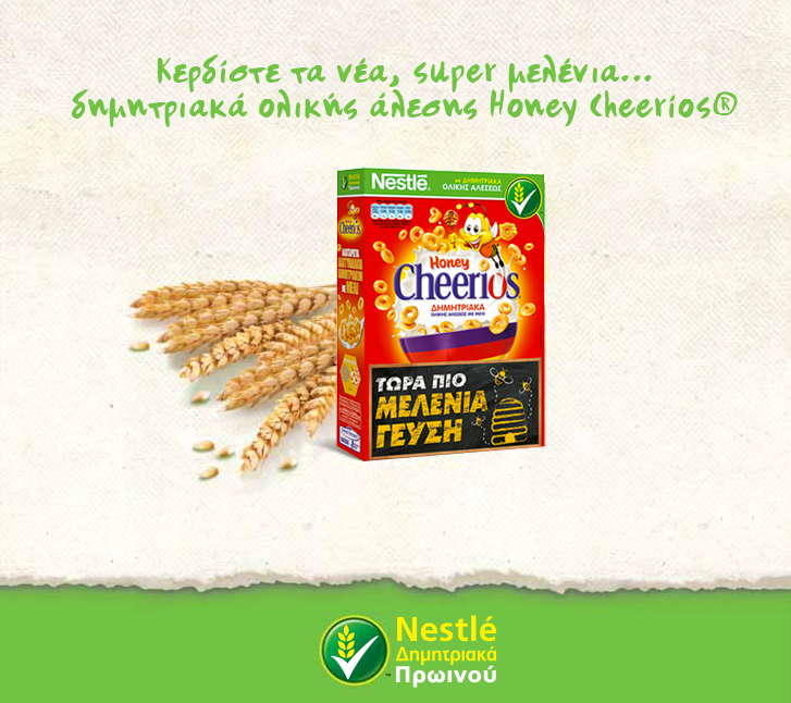 Το mednutrition.gr διοργανώνει διαγωνισμό και σας δίνει τη δυνατότητα να κερδίσετε τα νέα, super μελένια…. δημητριακά ολικής άλεσης Honey Cheerios®! 4 τυχεροί θα κερδίσουν από 5 συσκευασίες δημητριακών ολικής άλεσης Honey Cheerios®, για ένα γευστικό και θρεπτικό πρωινό ακόμη και στις χριστουγεννιάτικες διακοπές των μικρών μαθητών.