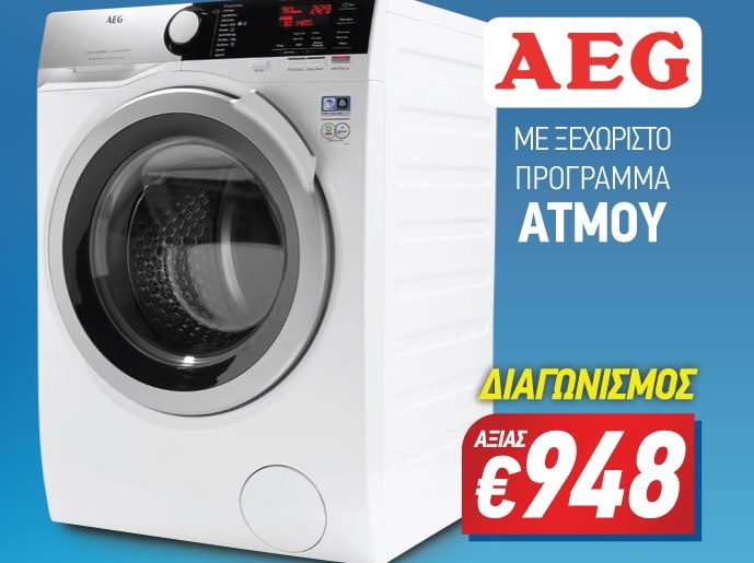 H Mega Euronics διοργανώνει διαγωνισμό και σας δίνει τη δυνατότητα να κερδίσετε ένα πλυντήριο ρούχων AEG σειράς 7000 με χωρητικότητα 10 κιλά, ενεργειακή κλάση Α+++, 1400 στροφών, με τεχνολογία ProSteam και επιλογή PlusSteam!