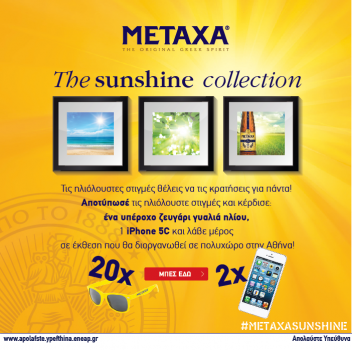 Το Metaxa διοργανώνει διαγωνισμό και σας δίνει τη δυνατότητα να κερδίσετε 2 iphone 5C και 20 ζευγάρια γυαλιά ηλίου!