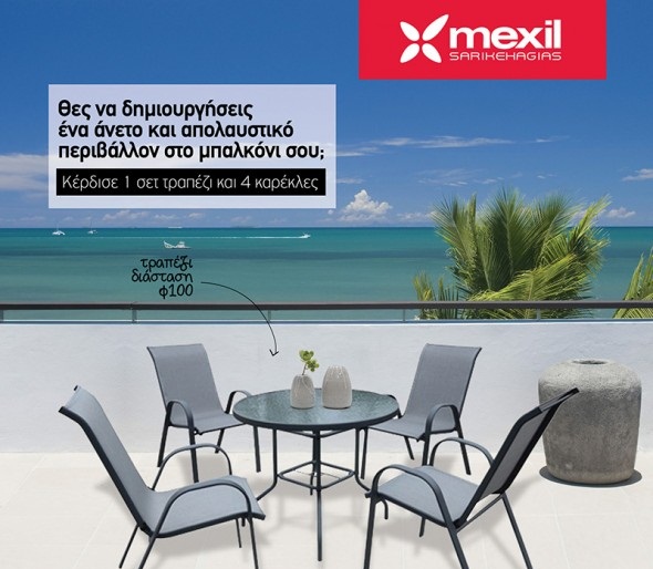 Η Mexil διοργανώνει διαγωνισμό και σας δίνει τη δυνατότητα να κερδίσετε ένα σετ τραπέζι με 4 καρέκλες για το μπαλκόνι ή τον κήπο σας!