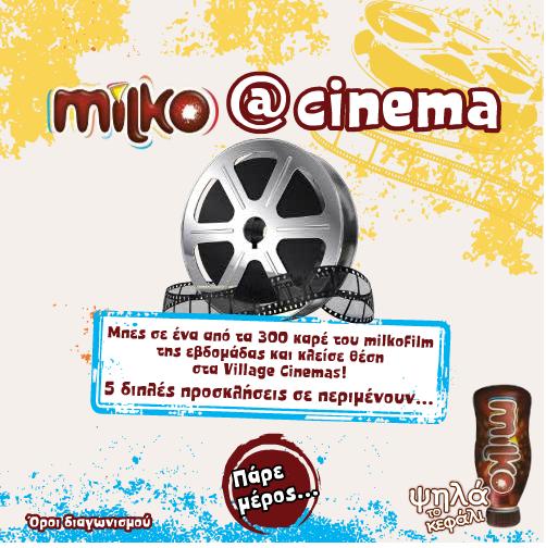 Το milko σε πάει σινεμα!!! Μπες σε ένα από τα 300 καρέ του milkofilm και κλείσε θέση στα Village Cinemas! Πάρε τωρα μέρος στο milko@cinema, γιατί 5 διπλές προσκλήσεις σε περιμένουν κάθε εβδομάδα..!