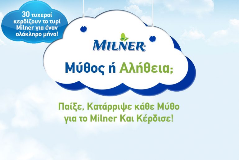 Η σελίδα Milner διοργανώνει διαγωνισμό και δίνει τη δυνατότητα σε 30 τυχερούς να κερδίσουν το τυρί Milner για 1 ολόκληρο μήνα.