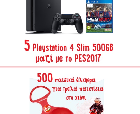 H BEL Mini Babybel διοργανώνει διαγωνισμό και δίνει τη δυνατότητα σε 5 τυχερούς να κερδίσουν από ένα PlayStation 4 Slim 500 GB μαζί με PES2017 και σε 500 ακόμη από ένα έλκηθρο!
