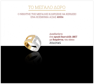 Η MISKO διοργανώνει το διαγωνισμό «ΑΝΑΚΑΛΥΨΤΕ ΤΟ ΧΡΥΣΑΦΙ ΤΗΣ MISKO» και σας δίνει τη δυνατότητα να κερδίσετε ένα χρυσό δαχτυλίδι 18ΚΤ με διαμάντια, αξίας €4.000 του οίκου ZOLOTAS.