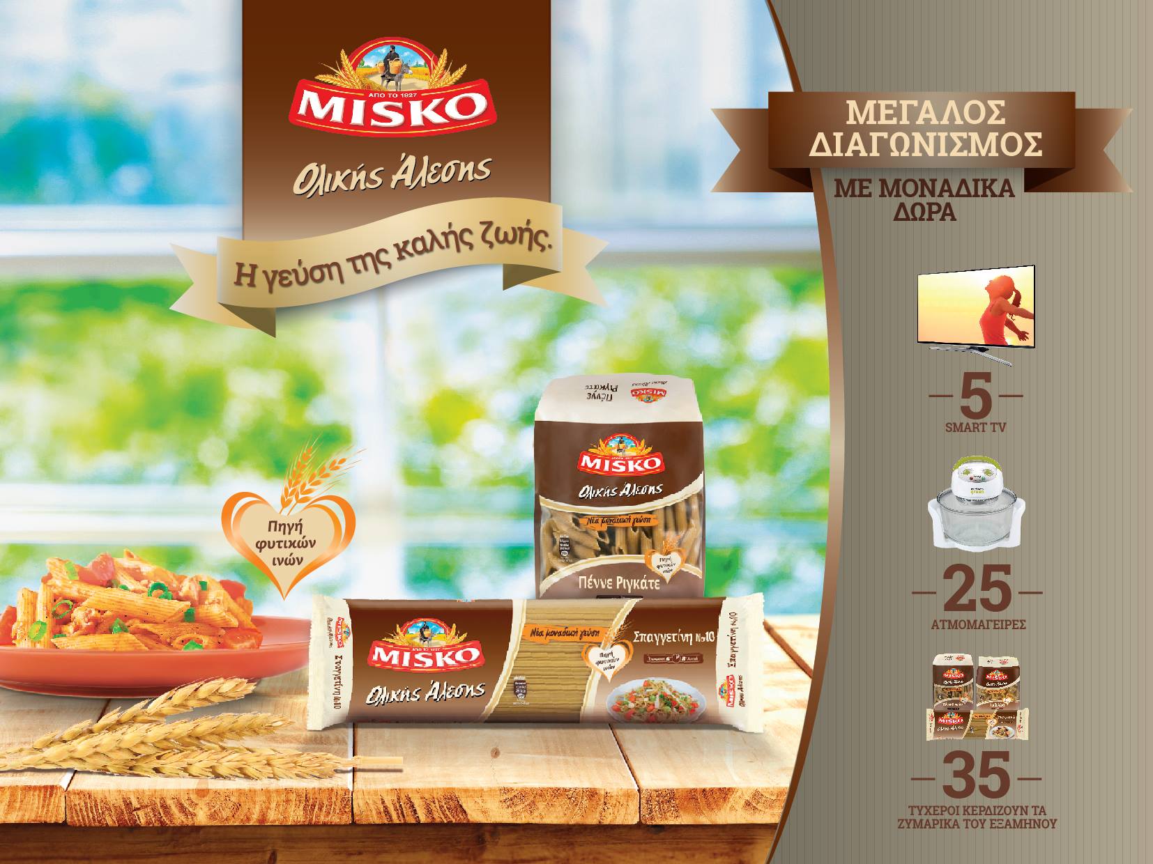 H Misko διοργανώνει διαγωνισμό και δίνει τη δυνατότητα να κερδίσετε 5 Smart TV LED 40′ Sony KDL40WD650, 25 Ατμομάγειρες Ιzzy και ακόμη 35 τυχεροί θα κερδίσουν από 25 πακέτα ζυμαρικών Oλικής Αλέσεως!