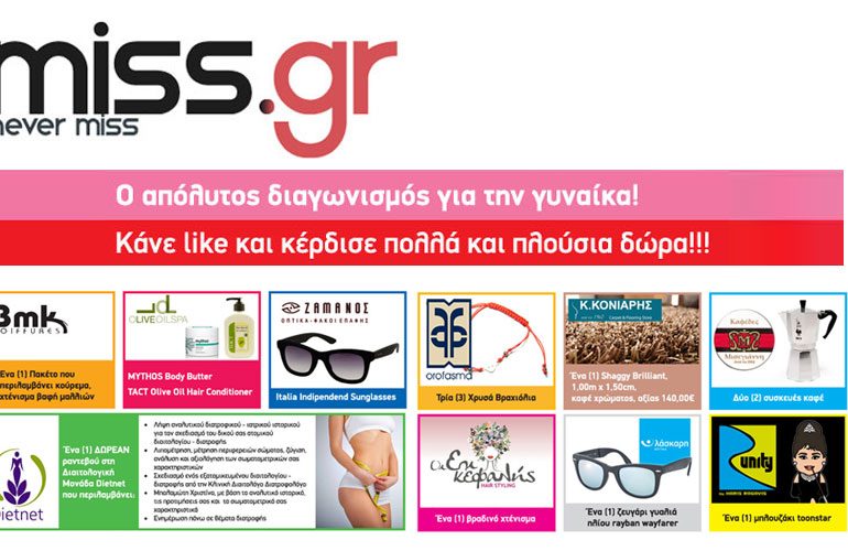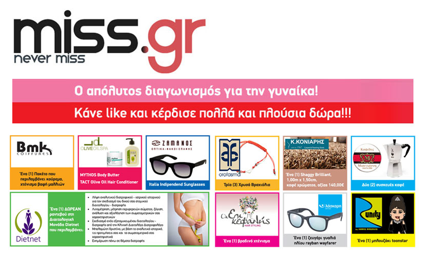 Το miss.gr διοργανώνει διαγωνισμό και σας δίνει τη δυνατότητα να κερδίσετε πολλά και πλούσια δώρα!