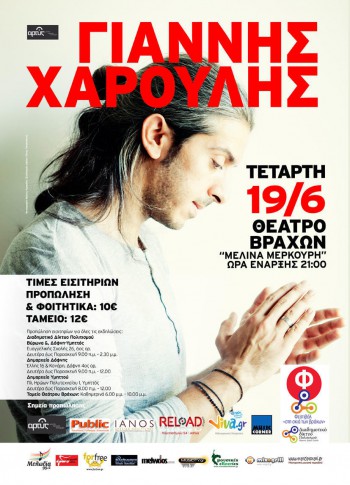 • 5 διπλές προσκλήσεις για την εμφάνιση του Γιάννη Χαρούλη στο Θέατρο Βράχων την Τετάρτη 19 Ιουνίου στις 21.00