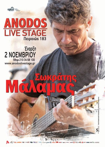 Το Mix Grill σας προσφέρει δύο μονές προσκλήσεις με ποτό για την πρεμιέρα του Σωκράτη Μάλαμα στο Άνοδος Live Stage το Σάββατο 2 Νοεμβρίου.