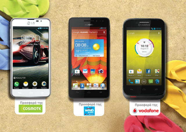 Το mobilenews.gr διοργανώνει διαγωνισμό και σας δίνει τη δυνατότητα να κερδίσετε 3 κορυφαία καλοκαιρινά smartphones. Το καθένα από τα smartphones που παρουσιάζουμε και δίνουμε στον διαγωνισμό, που δεν είναι άλλα από τα LG Optimus F5 από την Cosmote, Huawei Honor 2 από τη Wind και Smart III από τη Vodafone, έχει ιδιαίτερα χαρακτηριστικά και μοναδικές δυνατότητες. Το κοινό τους σημείο είναι ότι είναι έξυπνα και προσιτά.