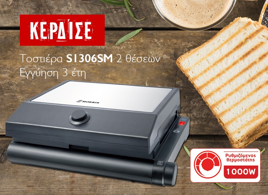 Η Morris διοργανώνει διαγωνισμό και σας δίνει τη δυνατότητα να κερδίσετε μία τοστιέρα S1306SM 2 θέσεων, 1000W!