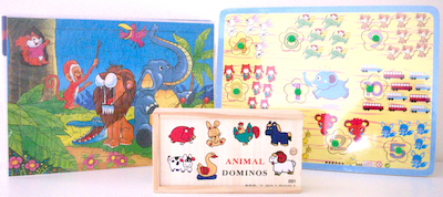 Το σετ περιλαμβάνει ένα παζλ (24 κομμάτια) για την ανάπτυξη δεξιοτήτων, ένα ξύλινο εκπαιδευτικό παζλ για την κατανόηση των αριθμών και ένα ξύλινο ντόμινο με ζωάκια για ώρες δημιουργικού παιχνιδιού!