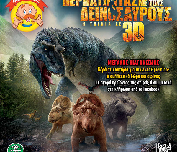 Ο moustakastoys.gr διοργανώνει διαγωνισμό και σας δίνει τη δυνατότητα να κερδίσετε 50 2πλες προσκλήσεις για την πρεμιέρα της 3D ταινίας «ΠΕΡΠΑΤΩΝΤΑΣ ΜΕ ΤΟΥΣ ΔΕΙΝΟΣΑΥΡΟΥΣ»!