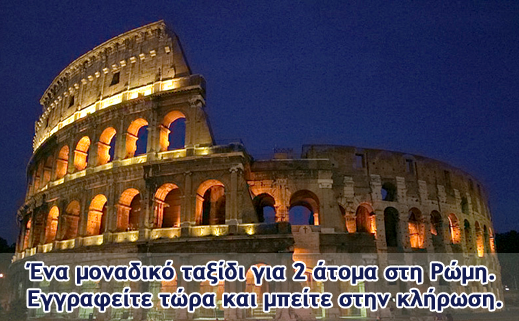 Γράψου τώρα στο διαγωνισμό MustHave.gr απλά πατώντας εδώ και πάρε μέρος στην κλήρωση για ένα ταξίδι στη Ρώμη.