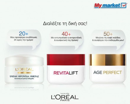 Το My Market διοργανώνει διαγωνισμό και σας δίνει τη δυνατότητα να κερδίσετε 20 κρέμες της προτίμησής σας μεταξύ των Τριπλή Φροντίδα L’OrealParis, Revitalift L’Oreal Paris και Age Perfect L’Oreal Paris.