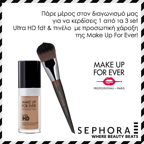 Το My Sephora διοργανώνει διαγωνισμό και σας δίνει τη δυνατότητα σε 3 τυχερές να κερδίσουν από ένα set Ultra HD fdt & πινέλο Make Up For Ever!