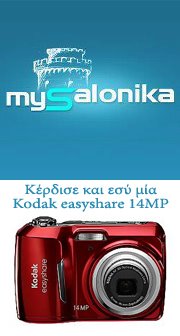 To mysalonika.gr διοργανώνει διαγωνισμό και σας δίνει τη δυνατότητα να κερδίσετε μια Kodak easyshare 14MP.