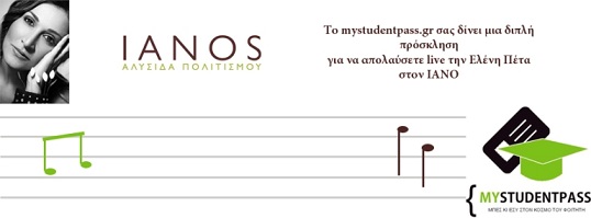 Διαγωνισμός mystudentpass.gr με δώρο μια διπλή πρόσκληση για να δείτε live την Ελένη Πέτα στον Ιανό