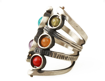 Χειροποίητο ανοιχτό ασημένιο δαχτυλίδι 925ο με ημιπολύτιμες πέτρες (περίδοτο, κορνεόλη, κοράλι, αμέθυστο, τυρκουάζ)