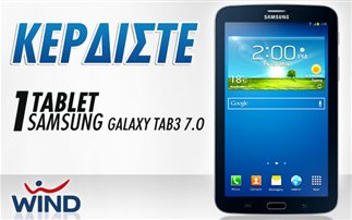 Το newsbeast.gr σε συνεργασία με τη WIND κάνει δώρο σε έναν τυχερό ένα μαύρο SAMSUNG Galaxy Tab 3, 7 ιντσών WiFi 8GB αξίας 199 ευρώ.
