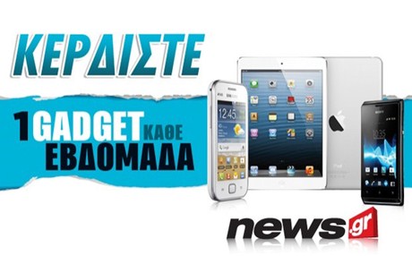 Το news.gr διοργανώνει διαγωνισμό και σας δίνει τη δυνατότητα να κερδίσετε ένα gadget κάθε εβδομάδα! Την 1η εβδομάδα ένα iPad Mini, τη 2η εβδομάδα ένα Sony Χperia E Dual Black, την 3η εβδομάδα ένα iPad Mini και την 4η εβδομάδα ένα Samsung Galaxy Ace 2 White.