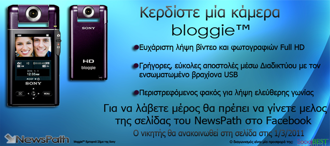 Το NewsPath.gr διοργανώνει νέο διαγωνισμό και χαρίζει σε έναν τυχερό νικητή μία κάμερα full HD Sony Bloggie