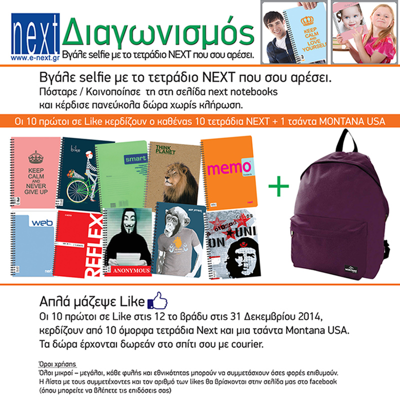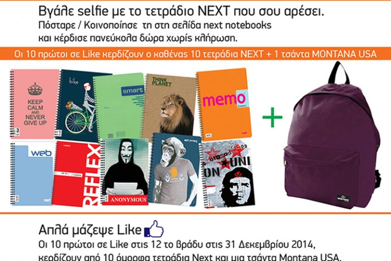 Η σελίδα NEXT notebooks διοργανώνει διαγωνισμό και σας δίνει τη δυνατότητα να κερδίσετε 10 τετράδια NEXT + μία τσάντα MONTANA USA!