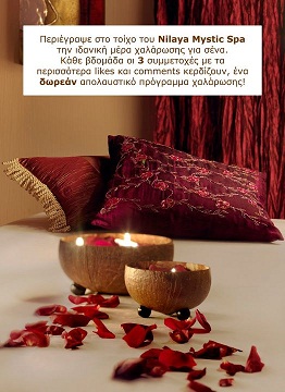 Το Nilaya Mystic Spa διοργανώνει διαγωνισμό και δίνει τη δυνατότητα σε 3 τυχερούς κάθε εβδομάδα να κερδίσουν από ένα δωρεάν απολαυστικό πρόγραμμα χαλάρωσης.