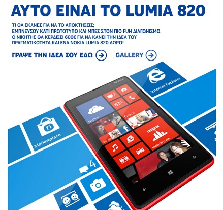 Η Nokia διοργανώνει διαγωνισμό και σας δίνει τη δυνατότητα να κερδίσετε ένα Nokia Lumia 820 και 600€ μετρητά.