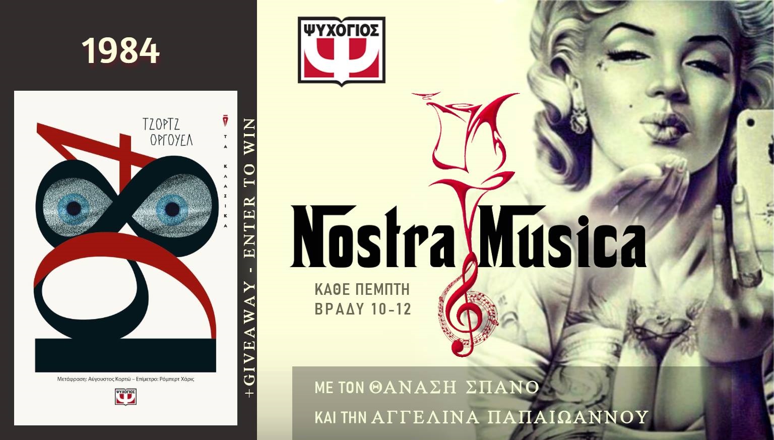 Η εκπομπή Nostra Musica διοργανώνει διαγωνισμό και σας δίνει τη δυνατότητα να κερδίσετε ένα αντίτυπο του βιβλίου “1984” του Τζορτζ Όργουελ από τις εκδόσεις Ψυχογιός!