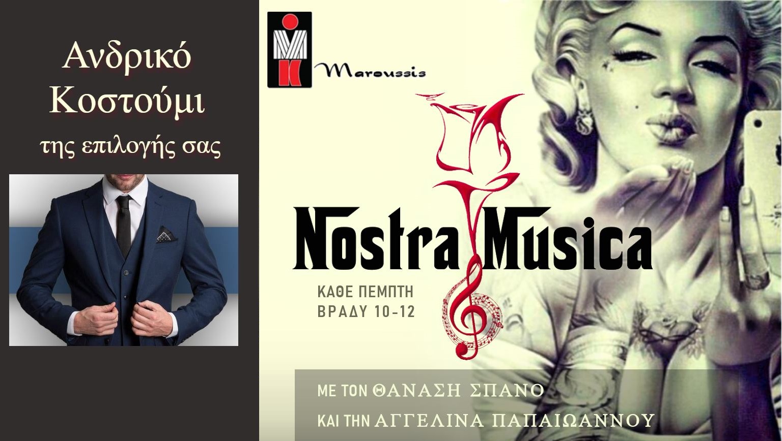 Η εκπομπή Nostra Musica διοργανώνει διαγωνισμό και σας δίνει τη δυνατότητα να κερδίσετε ένα ανδρικό κοστούμι της επιλογής σας από την ιστορική εταιρεία ανδρικού ενδύματος Κ Μαρούσης!