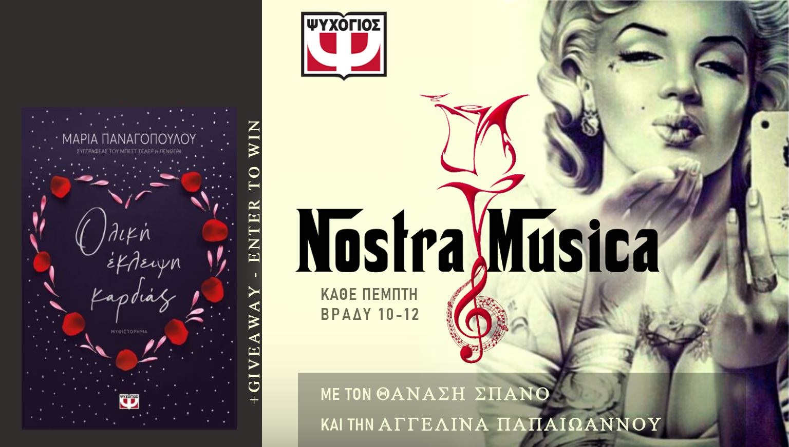 Η εκπομπή Nostra Musica διοργανώνει διαγωνισμό και σας δίνει τη δυνατότητα να κερδίσετε ένα αντίτυπο του βιβλίου “Ολική έκλειψη καρδιάς” της Μαρίας Παναγοπούλου από τις εκδόσεις Ψυχογιός!