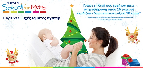 Η σελίδα NOYNOY School for Moms διοργανώνει διαγωνισμό και σας δίνει τη δυνατότητα να κερδίσετε 20 δωροεπιταγές αξίες 50€.