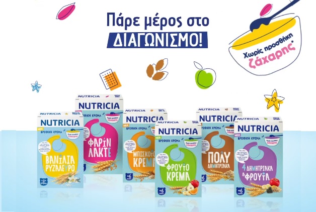 Το Nutricia Club Greece διοργανώνει διαγωνισμό και δίνει τη δυνατότητα σε 10 τυχερούς να κερδίσουν όλη η σειρά Βρεφικών Κρεμών Nutricia, χωρίς προσθήκη ζάχαρης!