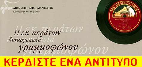 Το Ogdoo.gr εξασφάλισε για τους αναγνώστες του ένα αντίτυπο του καταλόγου «Η εκ περάτων δισκογραφία γραμμοφώνου» που έχει καταγράψει και επιμεληθεί ο Διονύσης Δημ. Μανιάτης με την ιδιόχειρη υπογραφή του.