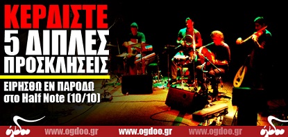 Το Ogdoo.gr εξασφάλισε για τους αναγνώστες του πέντε διπλές προσκλήσεις για τη συναυλία των Ειρήσθω εν Παρόδω στο Half Note Jazz Club, στις 10 Οκτωβρίου 2012.