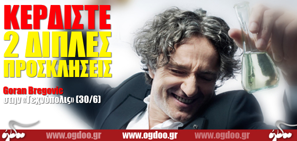 Το Ogdoo.gr εξασφάλισε για τους αναγνώστες του δύο διπλές προσκλήσεις για τη μοναδική συναυλία του Goran Bregovic στην Τεχνόπολη, το Σάββατο 30 Ιουνίου 2012.