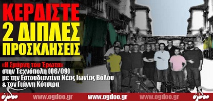 Το Ogdoo.gr εξασφάλισε για τους αναγνώστες του δύο διπλές προσκλήσεις για τη συναυλία της Εστουδιαντίνας Νέας Ιωνίας με το Γιάννη Κότσιρα, στην Τεχνόπολη, την Πέμπτη 06 Σεπτεμβρίου 2012.