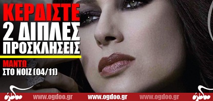 Το Ogdoo.gr εξασφάλισε για τους αναγνώστες του δύο διπλές προσκλήσεις με κρασί ή μπύρα για τη συναυλία της Μαντώς στο Noiz Club, στις 04 Νοεμβρίου 2012.