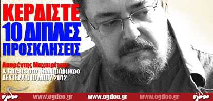 Το Ogdoo.gr εξασφάλισε για τους αναγνώστες του δέκα διπλές προσκλήσεις για τη μεγάλη συναυλία του Λαυρέντη Μαχαιρίτσα «Οι Άγγελοι ζουν ακόμη στη Μεσόγειο» στο Καλλιμάρμαρο Στάδιο, τη Δευτέρα, 09 Ιουλίου 2012.