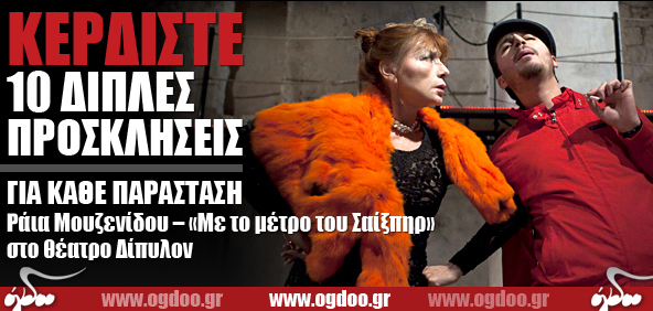Το Ogdoo.gr διοργανώνει διαγωνισμό και σας δίνει τη δυνατότητα να κερδίσετε από δέκα (10) διπλές προσκλήσεις για κάθε παράσταση της Ράιας Μουζενίδου στο Θέατρο Δίπυλον (δηλ. για τις 4,5,11,12,18 & 19 Φεβρουαρίου 2012).