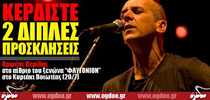 Το Ogdoo.gr εξασφάλισε για τους αναγνώστες του δύο διπλές προσκλήσεις για τη συναυλία του Ορφέα Περίδη, στα πλαίσια του φεστιβάλ Φλυγόνιον στο Κυριάκι Βοιωτίας, την Παρασκευή 20 Ιουλίου.