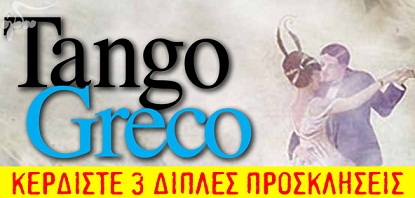 Το Ogdoo.gr εξασφάλισε για τους αναγνώστες του 3 διπλές προσκλήσεις για την παράσταση «Tango Greco» με τη Γλυκερία, το Χρήστο Θηβαίο, την Ελένη Βουδουράκη & τον Γιάννη Χριστόπουλο στο Θέατρο Badminton στις 18 Φεβρουαρίου 2013.
