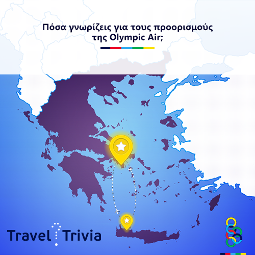 Πόσα γνωρίζεις για τους προορισμούς της Olympic Air; Ανακάλυψε τα ταξιδιωτικά μυστικά των προορισμών της Olympic Air και κέρδισε ταξιδιωτικά πακέτα σε Αλεξανδρούπολη, Κρήτη και Ιωάννινα, με αεροπορικά εισιτήρια και διαμονή!