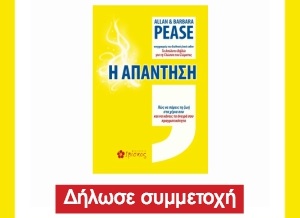Η σελίδα Όμορφη Ζωή διοργανώνει διαγωνισμό και σας δίνει τη δυνατότητα να κερδίσετε 3 αντίτυπα του βιβλίου “Η Απάντηση” των Allan και Barbara Pease από τις Εκδόσεις Ιβίσκος! Αν η ζωή σου είναι γεμάτη ερωτηματικά, σου χρειάζεται η «Απάντηση». Όταν η ζωή του Allan και της Barbara καταστράφηκε, αυτοί στράφηκαν στην επιστήμη για να μάθουν πώς θα μετατρέψουν την αποτυχία τους σε επιτυχία.