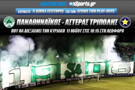 Το onsports.gr διοργανώνει διαγωνισμό και σας δίνει τη δυνατότητα να κερδίσετε 5 διπλά εισιτήρια για τον αγώνα Παναθηναϊκός–Αστέρας Τρίπολης την Κυριακή 11 Μαΐου και ώρα 18:15 το απόγευμα στη Λεωφόρο.
