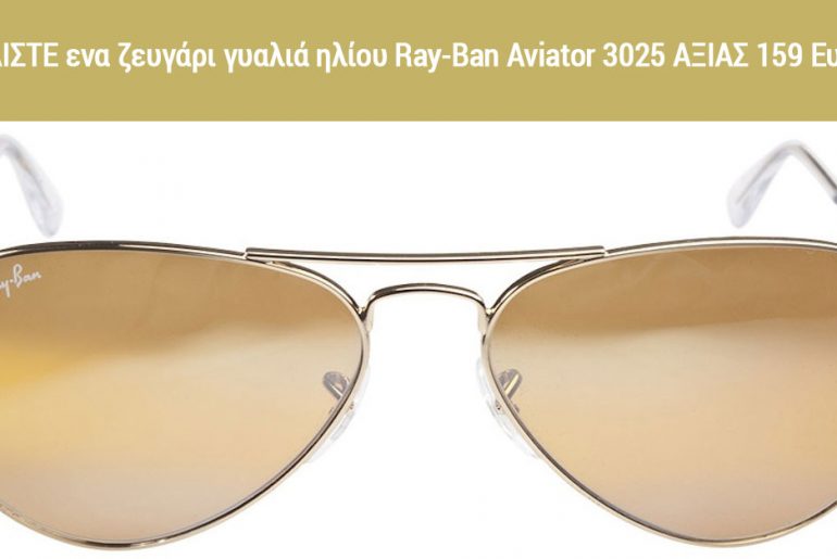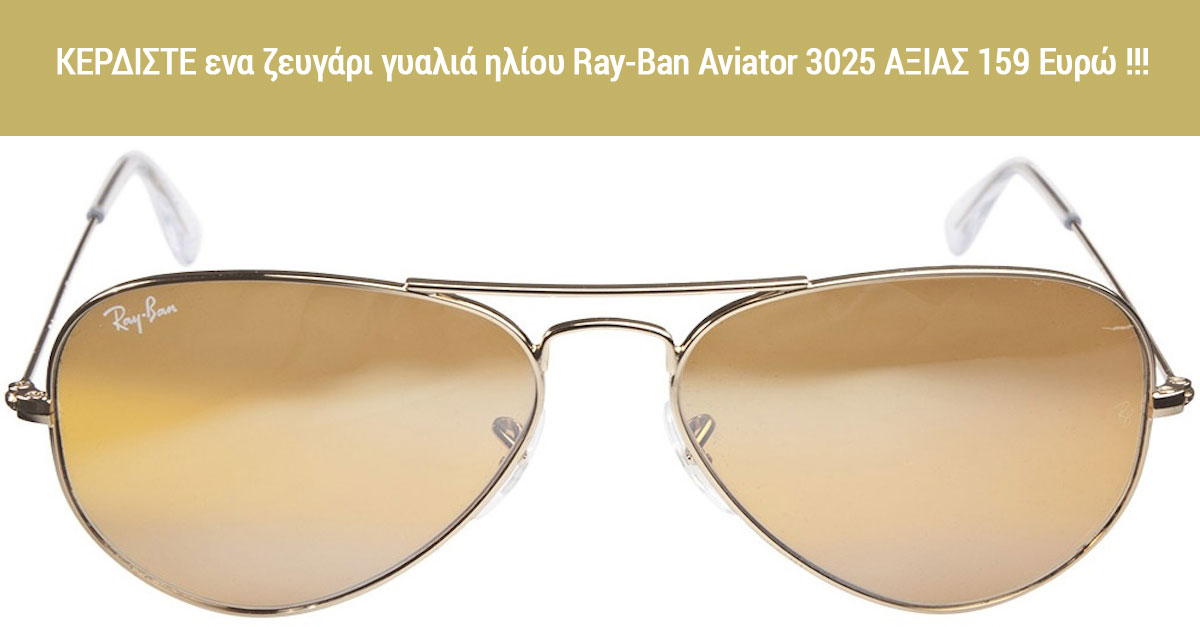 Το Optiko Kentro διοργανώνει διαγωνισμό και σας δίνει τη δυνατότητα να κερδίσετε ένα ζευγάρι γυαλιά ηλίου Ray-Ban aviator 3025 αξίας 159 ευρώ!