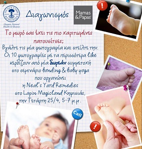 Το organicbeauty.gr διοργανώνει διαγωνισμό και σας δίνει τη δυνατότητα να κερδίσετε μία δωρεάν συμμετοχή στο σεμινάριο bonding & baby yoga που οργανώνει η Neal’s Yard Remedies στο Lapin Magicland Κηφισιάς, την Τετάρτη 25/4.